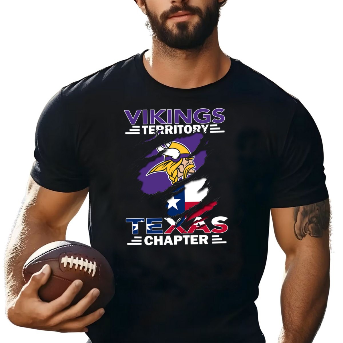 Show your pride for the Vikings Territory Texas Chapter with this unique fan-made T-shirt, perfect for die-hard football fans and those who love to represent their favorite team. Crafted from soft, durable cotton, this classic-fit tee is ideal for casual outings, themed events, or everyday wear. With its eye-catching design featuring the Minnesota football emblem and Lone Star State flag, you’ll stand out in any crowd while staying comfortable all season long.