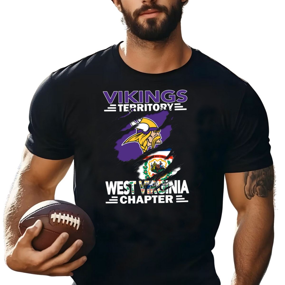 Show your pride for the Vikings Territory West Virginia Chapter with this eye-catching graphic printed T-shirt! Perfect for fans and supporters, this shirt is ideal for casual outings, themed events, or simply showcasing your love for the Viking spirit in your daily wear. Made with a unique fan-made design and printed in the USA, this T-shirt combines bold style with comfort, making it a must-have addition to your wardrobe.