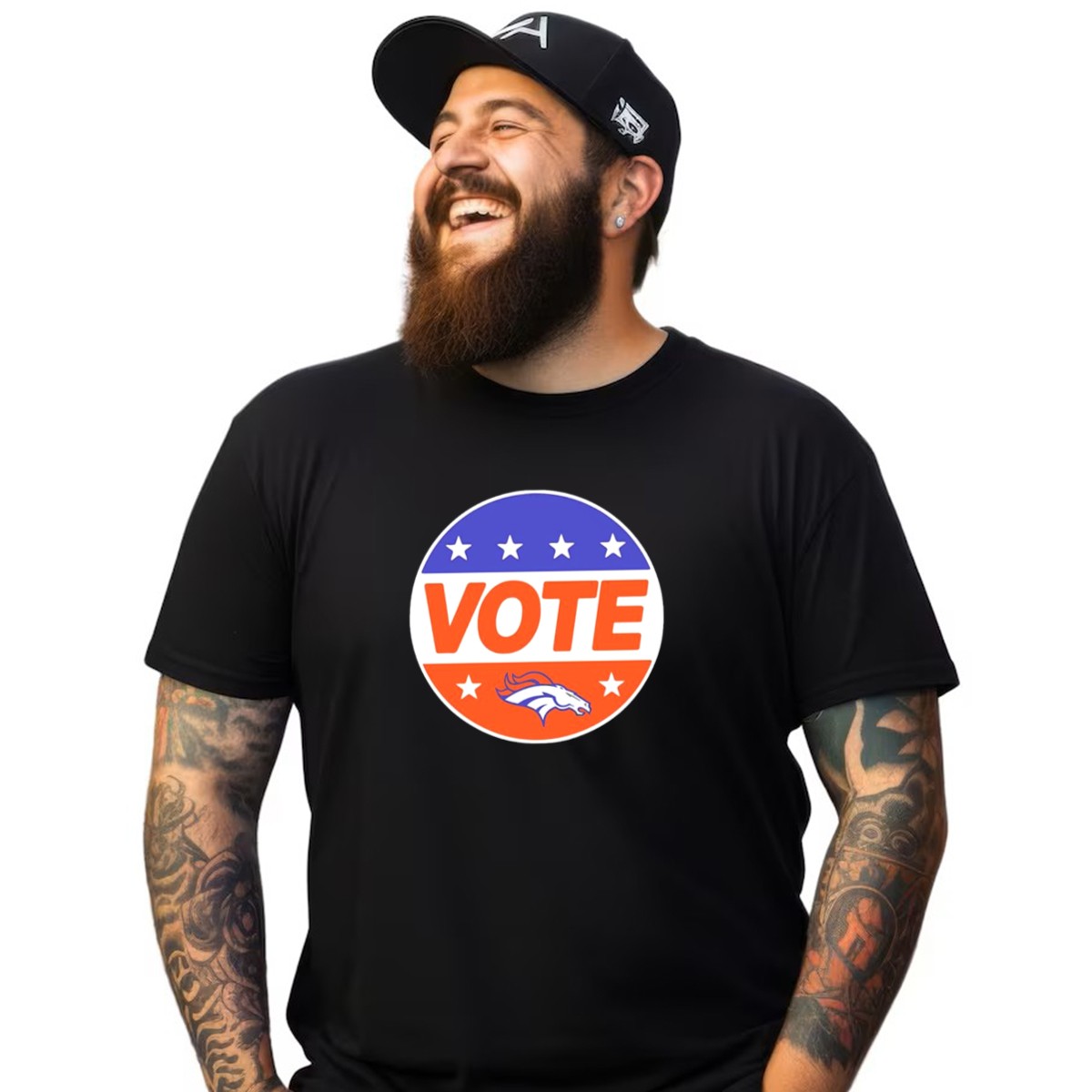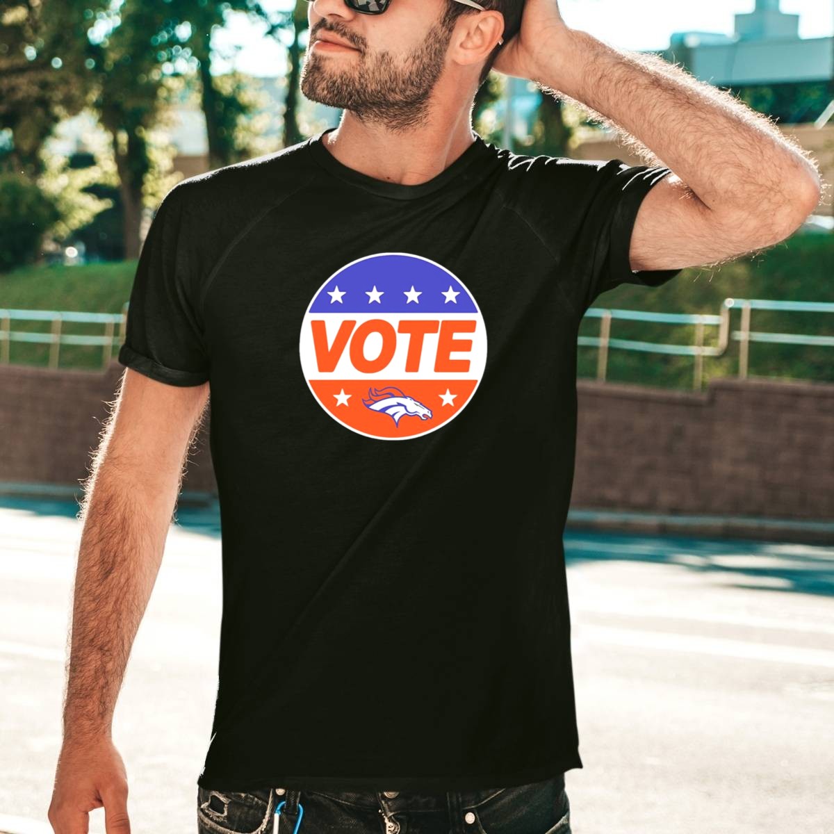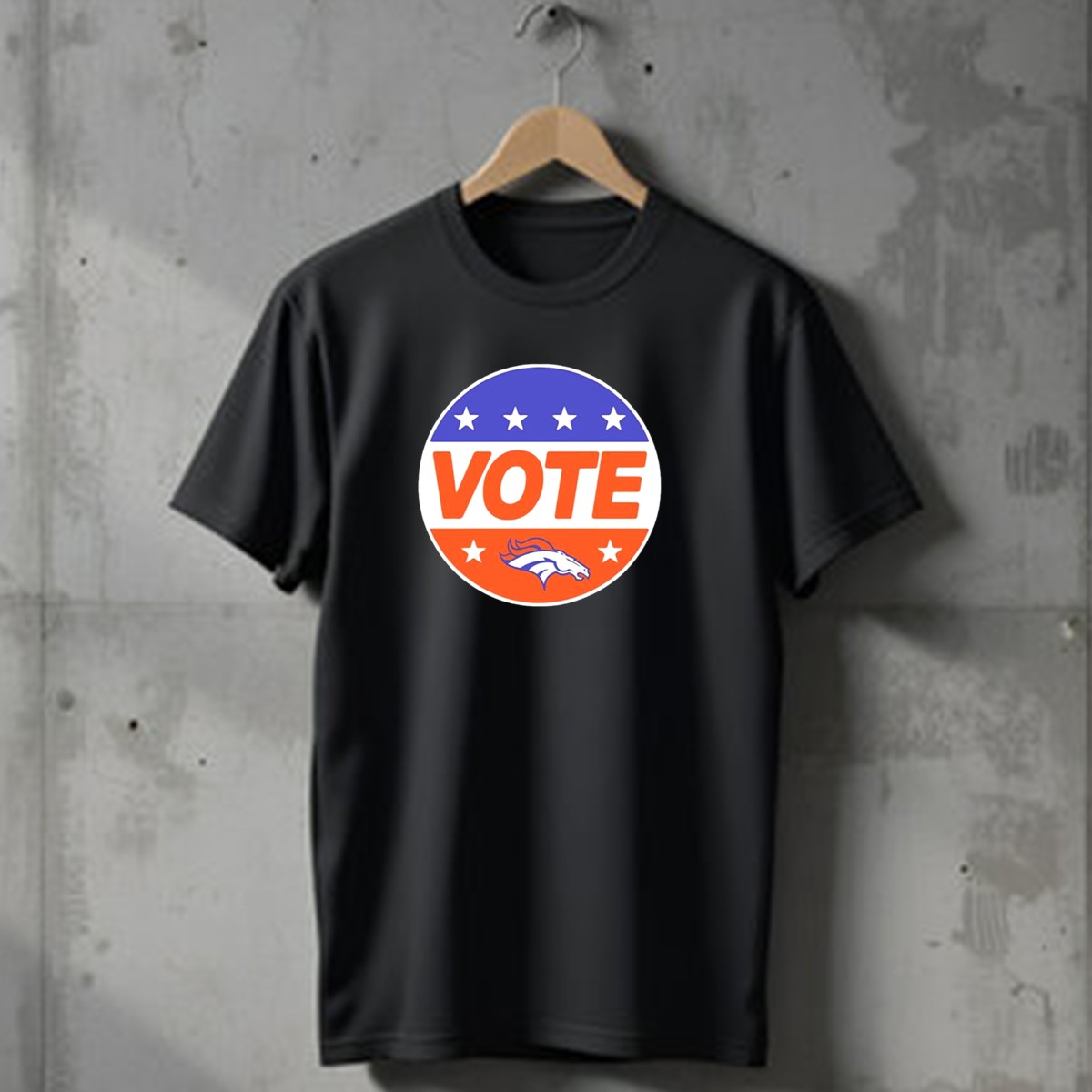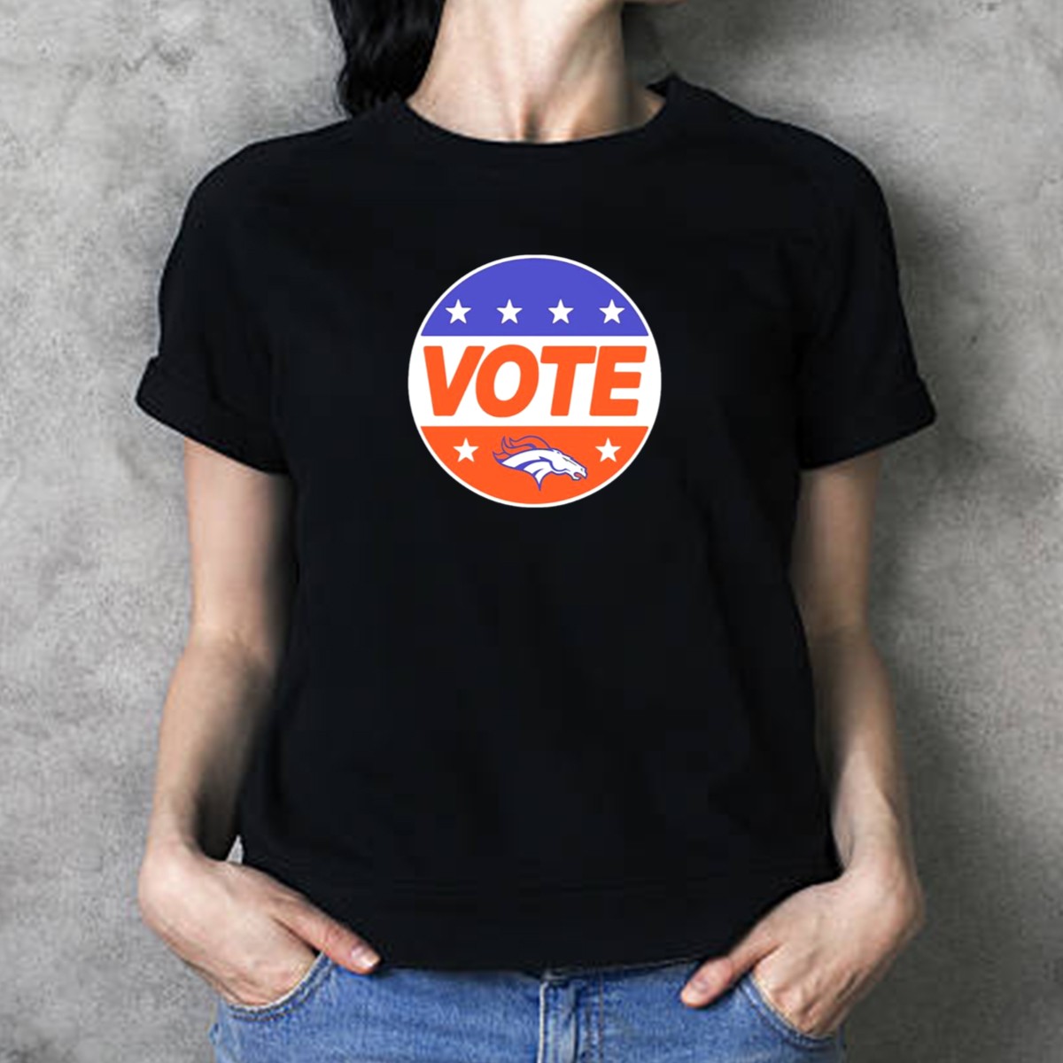 Show your unwavering support for the Denver Broncos with our Vote Denver Broncos Team Logo Stars T-Shirt! This fan-made design is perfect for die-hard fans and casual wearers alike, making it an ideal choice for game days, themed events, or just hanging out with friends. Crafted for comfort and style, this shirt features a striking team logo surrounded by stars, ensuring you stand out in the crowd while cheering for your favorite team.