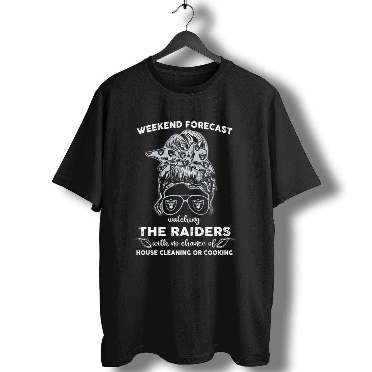 Get ready to cheer on your favorite team with our Weekend Forecast Watching The Raiders With No Chance Of House Cleaning Or Cooking T-Shirt! Perfect for dedicated fans who enjoy casual outings, themed events, or simply lounging at home, this shirt showcases a fun and relatable design that speaks to all those who embrace their love for football over chores. Made with comfort in mind, this classic-fit tee is not just stylish but also a great conversation starter among fellow fans!