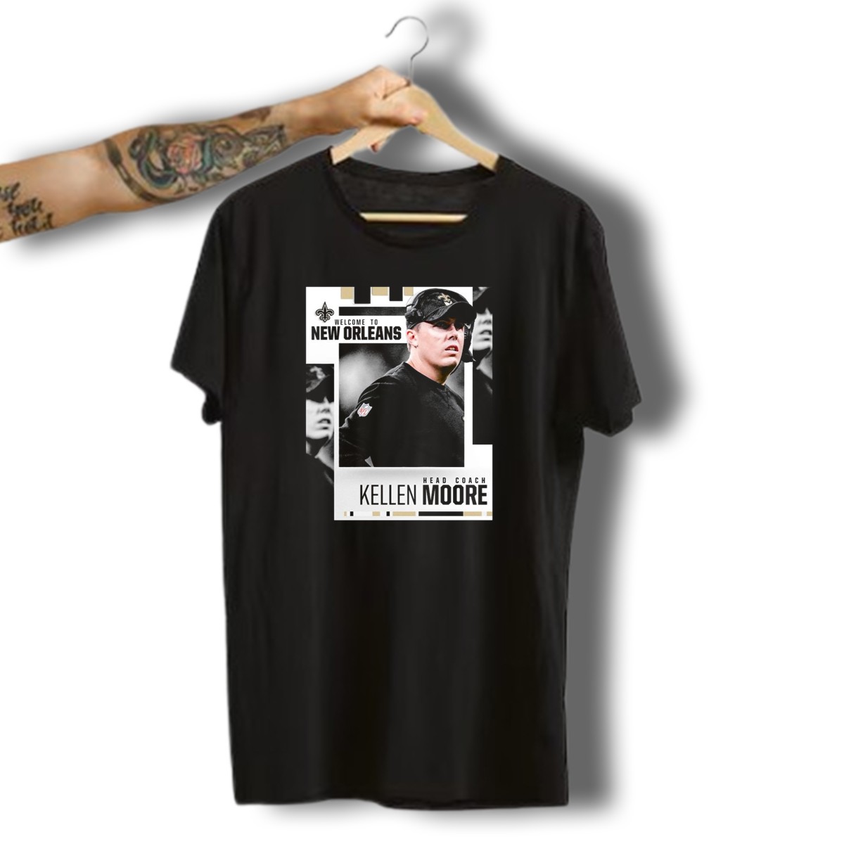 Celebrate your love for the New Orleans Saints and show your support for Head Coach Kellen Moore with this fan-made graphic T-shirt. Perfect for die-hard football fans, this shirt is designed for casual wear, themed events, or daily outings. Made in the USA, it combines comfort and style, making it an essential addition to any Saints enthusiast’s wardrobe.