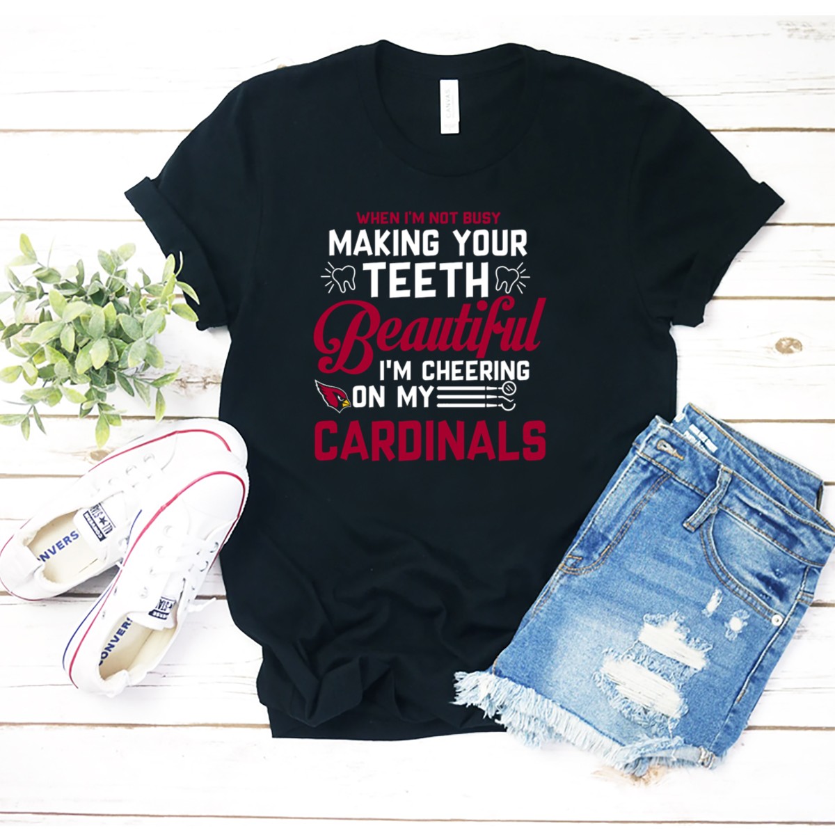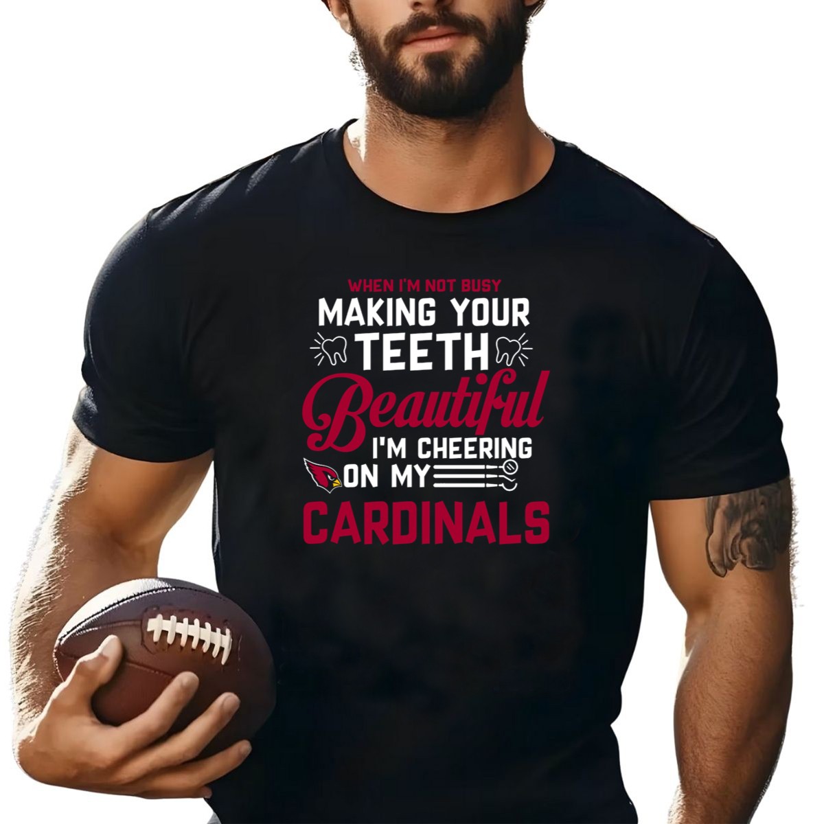 Show off your passion for dentistry and your love for the Arizona Cardinals with this fun and unique T-shirt! Perfect for dental professionals, sports fans, or anyone who enjoys a good pun, this shirt is ideal for casual outings, themed events, or just lounging around. Made from 100% cotton, it combines comfort with a playful spirit, making it a must-have for all seasons.