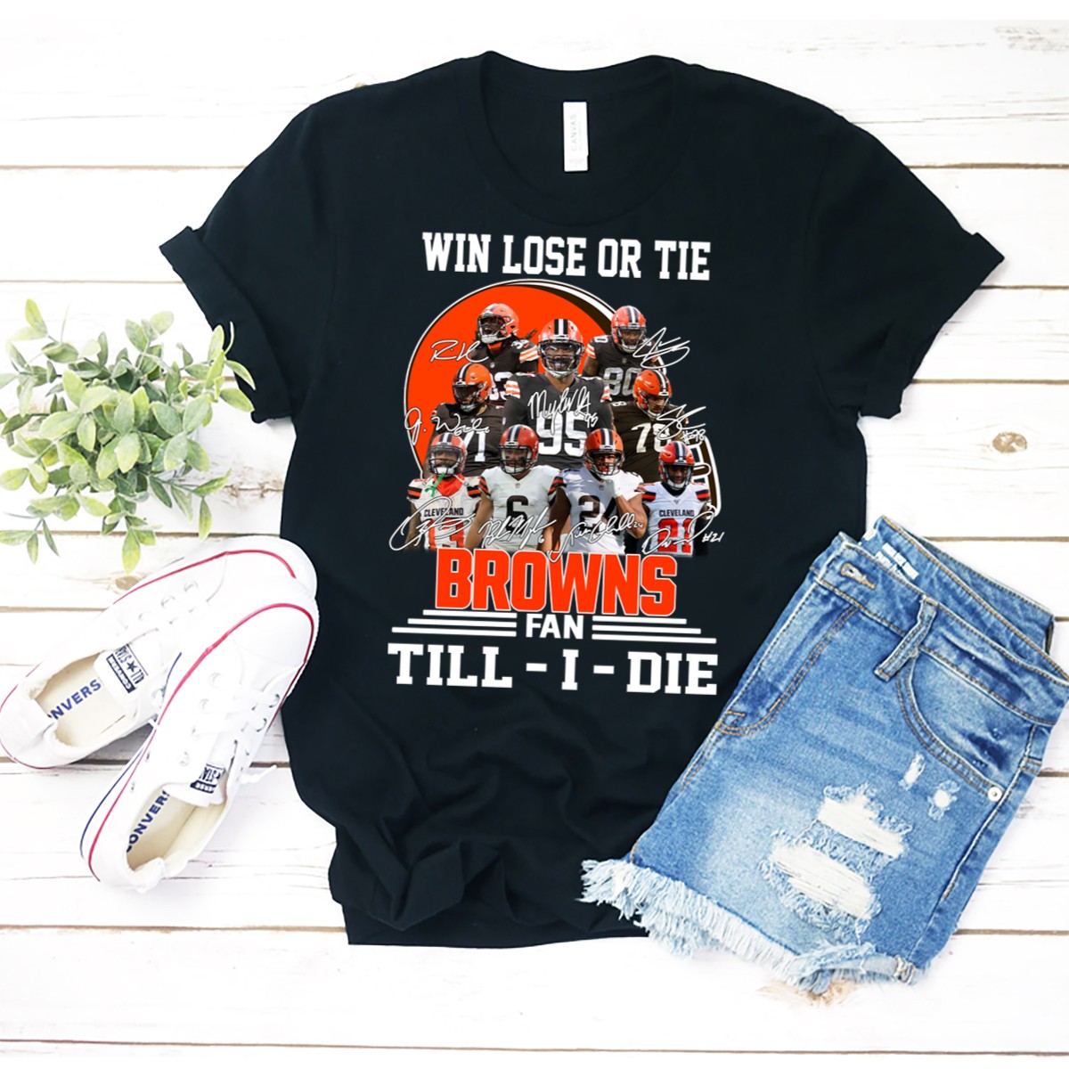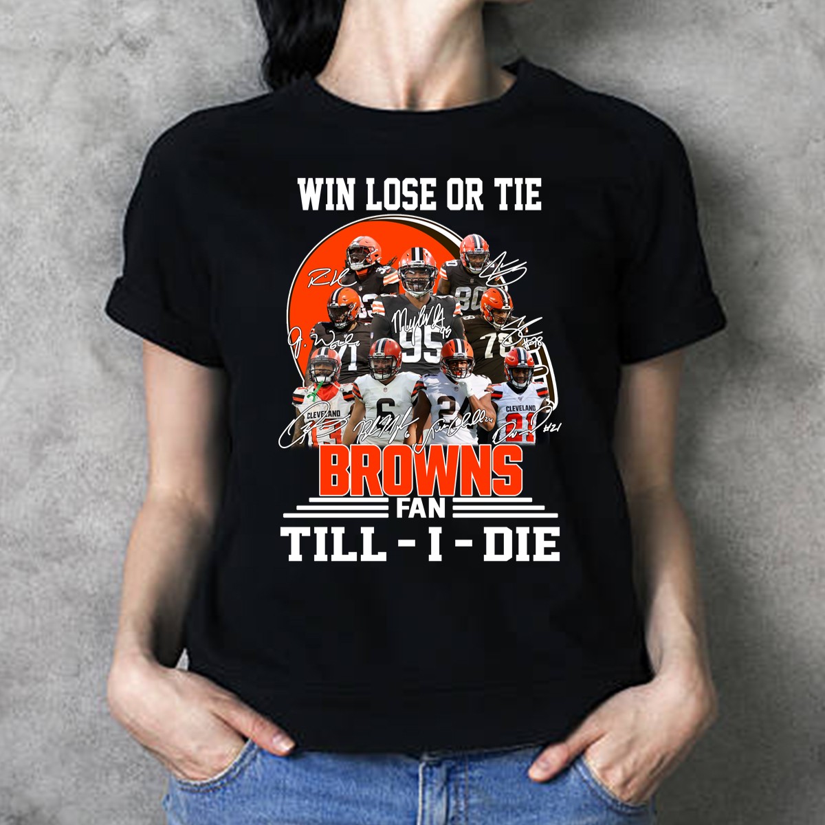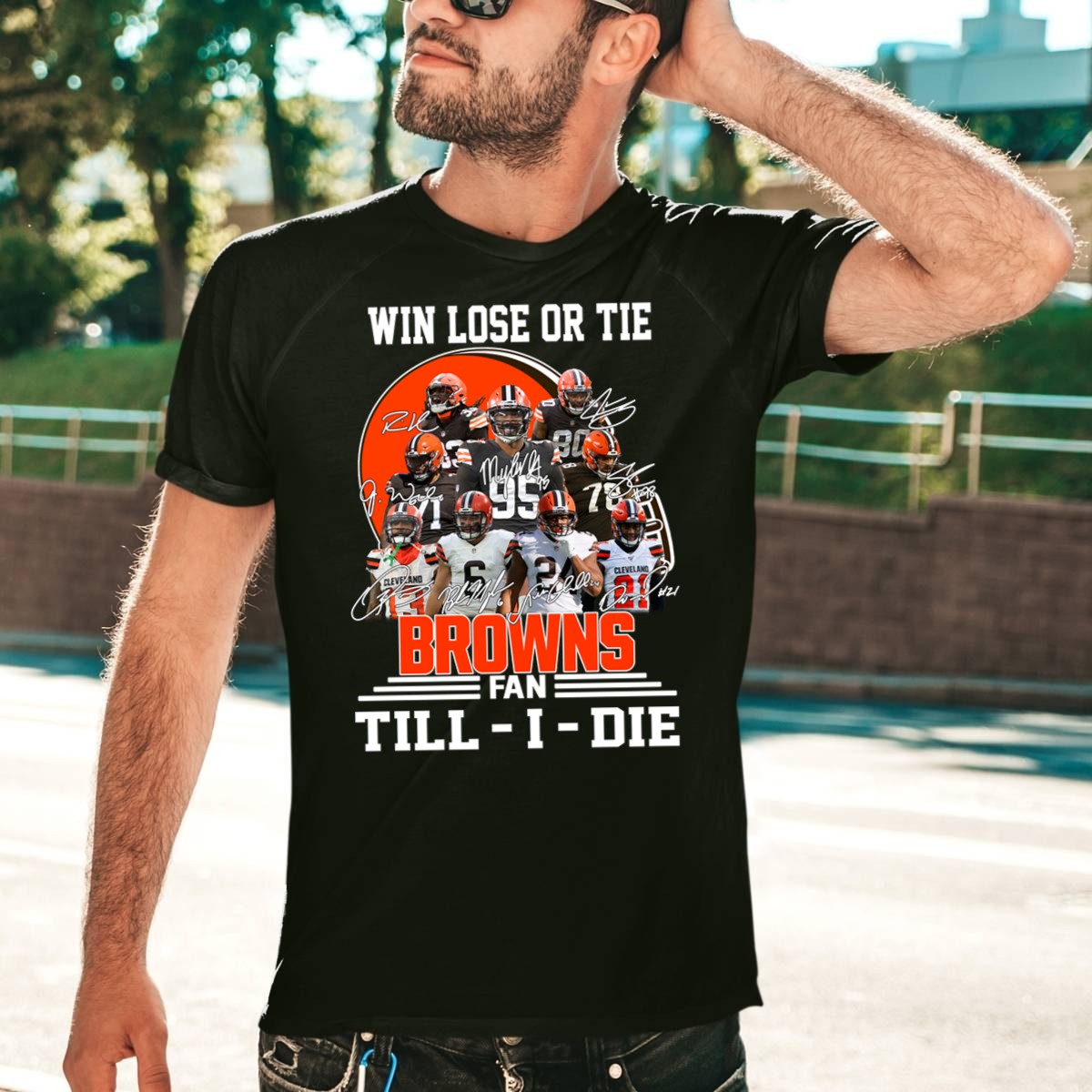 Win Lose Or Tie Cleveland Browns Fan Till I Die Signatures T-Shirt