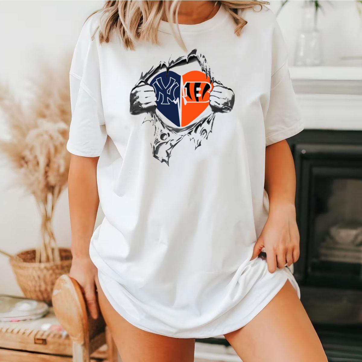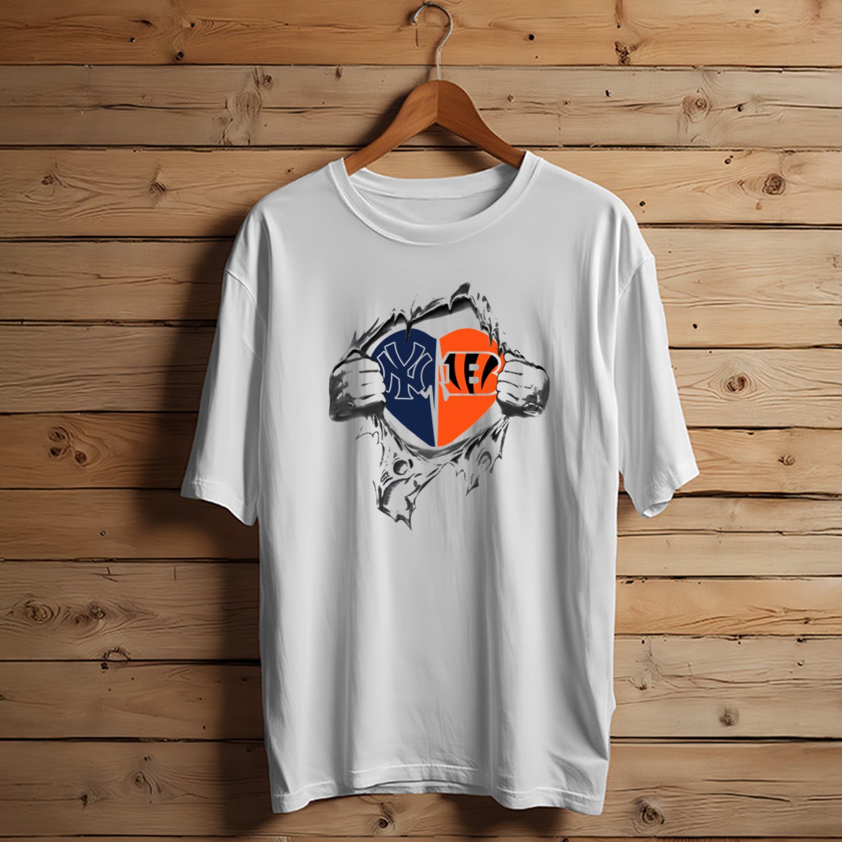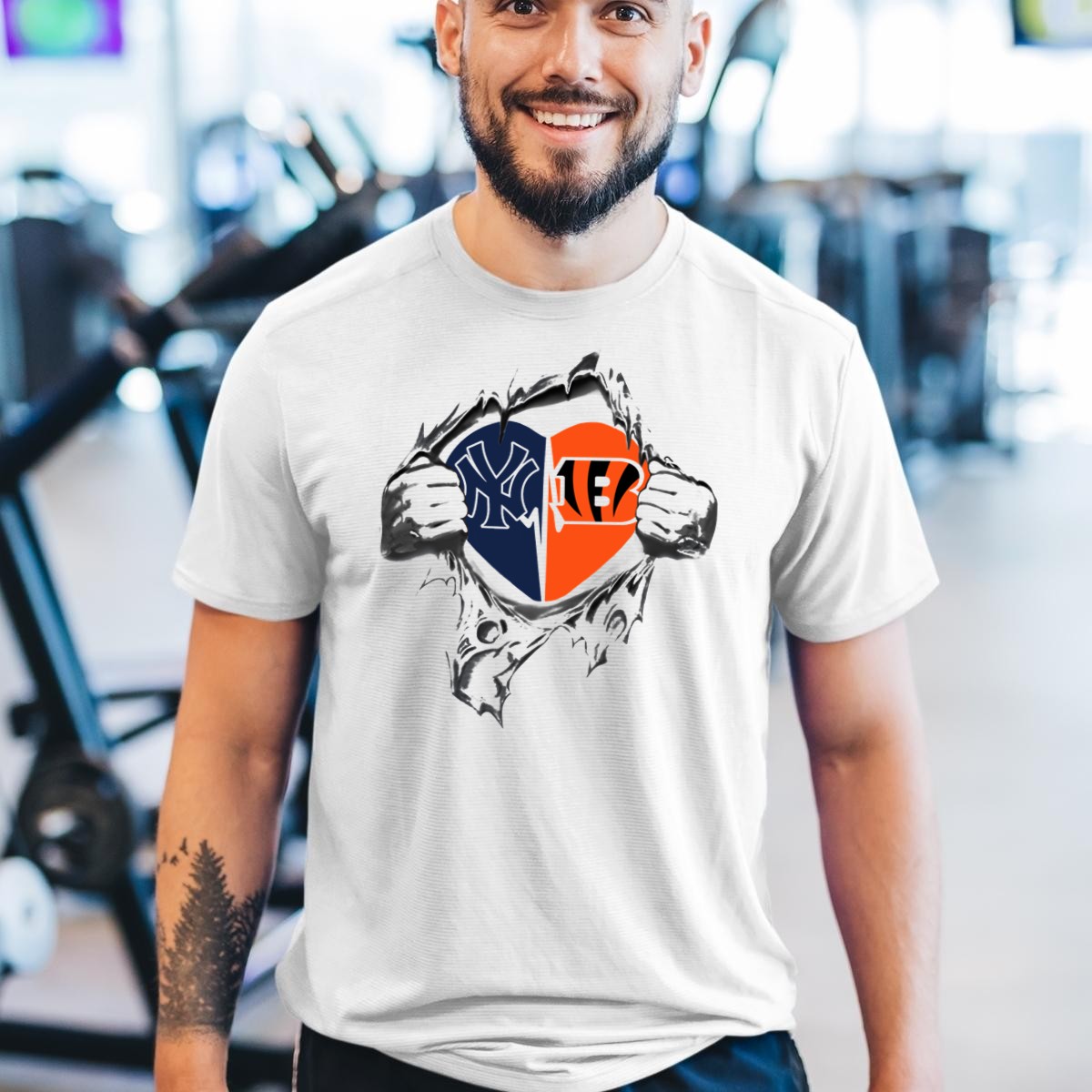 Show off your team spirit with our Yankees Cincinnati Bengals Heart Revealed T-Shirt! This fan-made design is perfect for passionate sports enthusiasts who want to celebrate their favorite teams in style. Ideal for casual wear, themed events, or daily outings, this shirt combines comfort and flair, making it a must-have for any fan. Printed in the USA, it showcases iconic logos that resonate with both Yankees and Bengals supporters, making it a unique addition to your wardrobe.