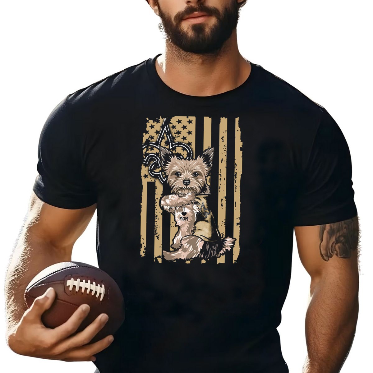 Yorkshire Terrier I Love Mom New Orleans Saints Fleur De Lis Stripes T Shirt
