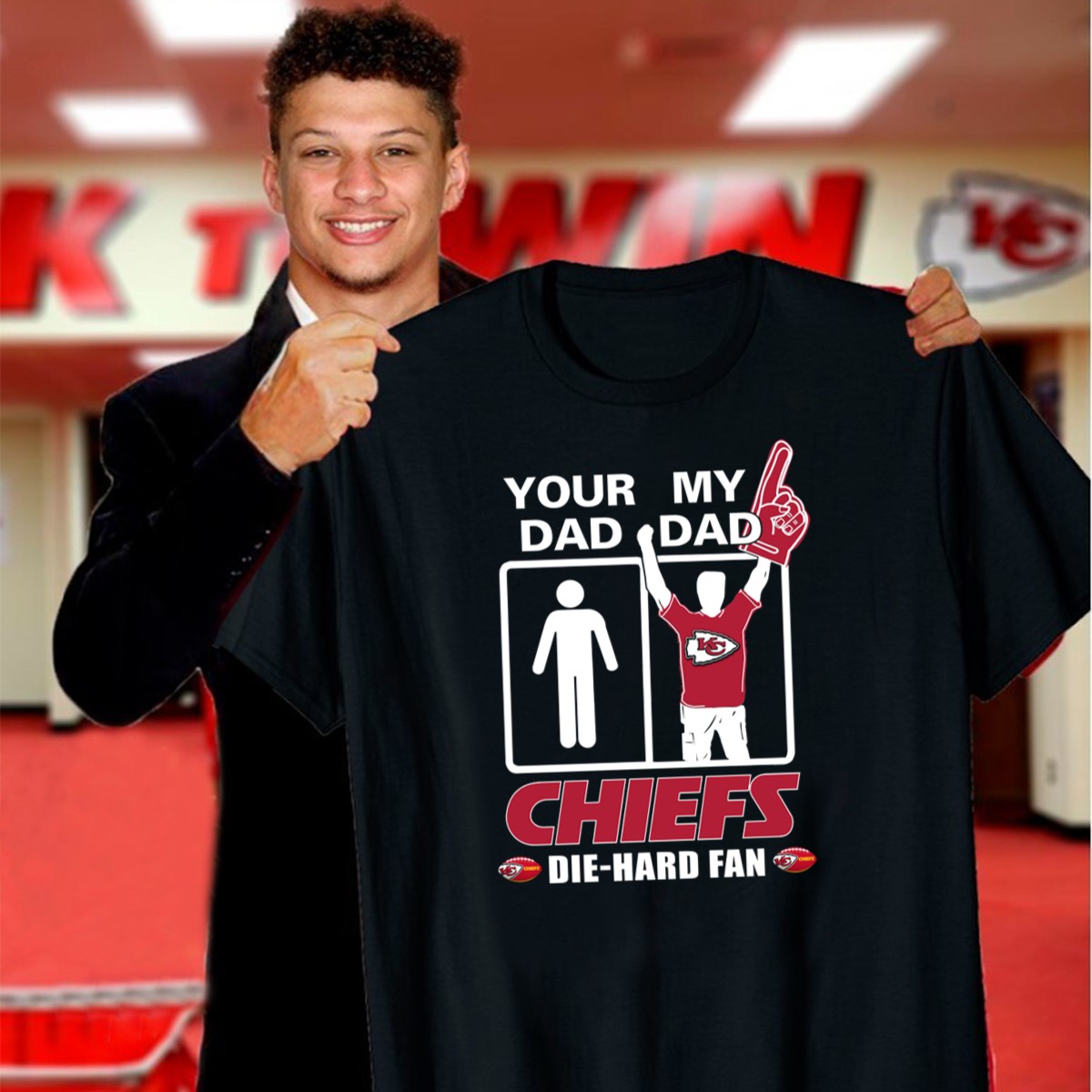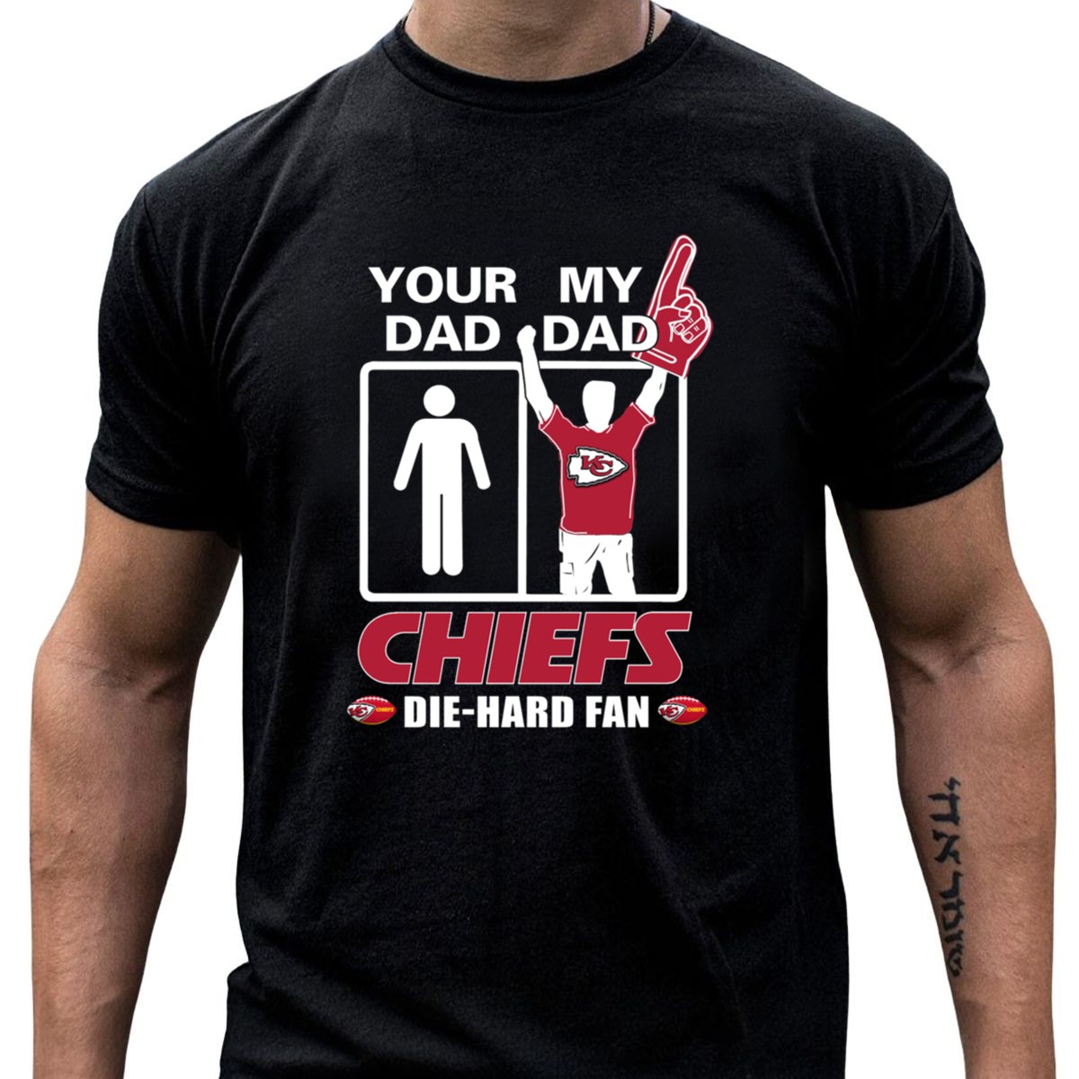 Show your unwavering support for the Kansas City Chiefs with our “Your Dad My Dad Chiefs Die Hard Fan” T-Shirt! Perfect for football enthusiasts and dedicated fans alike, this shirt combines comfort and style, making it an ideal choice for casual outings, game days, and themed events. With its fan-made design proudly printed in the USA, this t-shirt is a unique way to celebrate your passion for the Chiefs while sharing a fun sentiment with fellow fans.